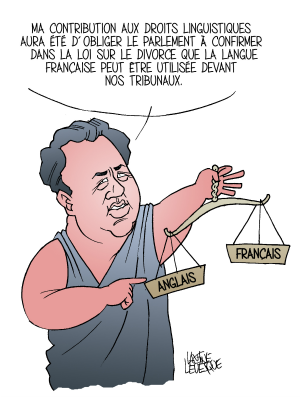 Ma contribution aux droits linguistiques aura été d'obliger le Parlement à confirmer dans la Loi sur le divorce que la langue française peut être utilisée devant nos tribunaux.