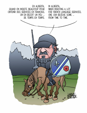 En Alberta, quand on insiste beaucoup pour obtenir des services en français, on en reçoit un peu ... de temps en temps. (bil.)
